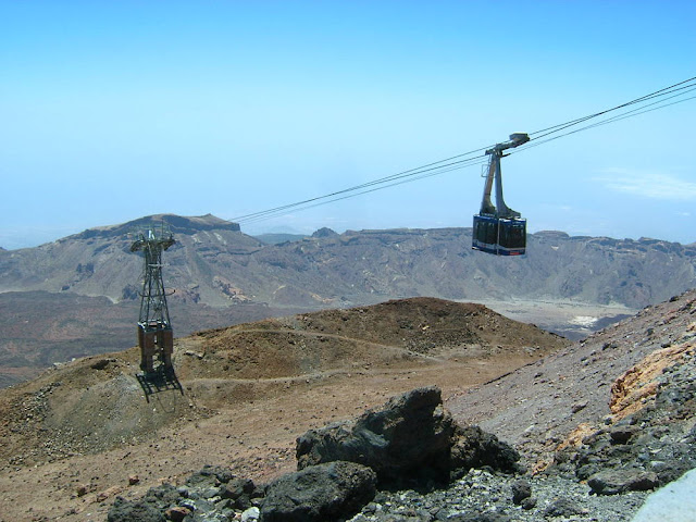 Como se puede deducir cacofónicamente, Echeyde es el antiguo nombre que los aborígenes tinerfeños daban al Teide, el emblemático volcán que con sus 3.718 metros de altitud no sólo es el techo de la isla sino de España entera y el tercero más alto del mundo de los que están activos, tras los hawaianos Mauna Kea y Mauna Loa. Pese a todo, se trata de un gigante dormido que de momento parece no ofrecer peligro, hasta el punto de que miles de turistas lo visitan a diario; para ello usan un teleférico que en 8 minutos lleva hasta 160 metros de la cima, punto a partir del cual quien desee seguir hasta ésta debe hacerlo a pie y previa reserva. No fue mi caso al ir cargado con bebé, razón por la cual tuve que conformarme con recorrer el agreste sendero de lava endurecida que circunvala el cono, azotado por un viento implacable, gélido pese a ser verano, que me dejó los oídos pitando una temporada. Sin duda Guayota estaba empeñado en impedir un cara a cara conmigo.